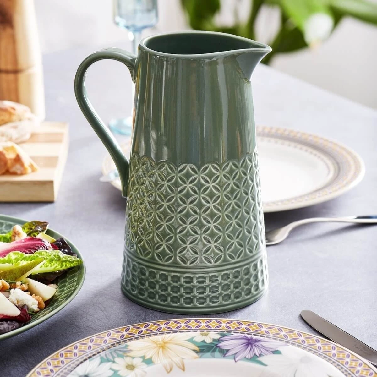 This Atrium jug from Portmeirion features an embossed geometric pattern on a beautiful teal body. Use for displaying your favourite flowers, as a statement piece, or to mix and match on your dinner table with other items in the collection. The Atrium Collection from Portmeirion combines beautiful florals and geometric patterns creating a stunning eclectic display. Perfect for modern lifestyles seeking a classic yet contemporary look, this Atrium vase is a stylish addition to your home.