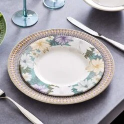 Featuring a green border with beautiful stylised blooms, this Atrium Floral Side Plate from Portmeirion creates a stylish table setting that all will admire. This 8.75in/22cm plate is the perfect choice for use as a side plate or smaller portioned meals during any occasion, from family meals to dinner parties. Made at Portmeirion’s factory, these plates are perfect for mixing-and-matching other patterns in the collection. Make a stylish statement with this elegant collection.