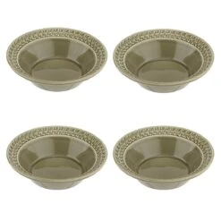 The Botanic Garden Harmony collection will bring a retro look to your tableware collection. This set of four cereal bowls comes in a moss green shade with embossed detailing on the rim of each plate. These bowls make a chic addition to your dining table and are perfect for cereal, soup or appetisers. The Harmony collection is inspired by striking iconic Botanic Garden motifs, originally designed by Susan Williams-Ellis.