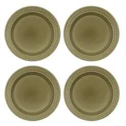 Bring a retro look to your dinner table with this set of four Botanic Garden Harmony Dinner Plates from Portmeirion, featuring beautiful shades of moss green with embossed detailing on the rim of each plate. Inspired by striking iconic Botanic Garden motifs, originally designed by Susan Williams-Ellis, this Botanic Garden Harmony collection brings a retro look with a modern twist to everyday moments.
