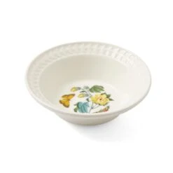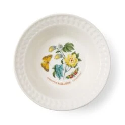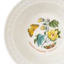 A fresh take on an iconic design. This Amber cereal bowl from the Botanic Garden Papilio range is a wonderful addition to your tableware collection. First designed by Susan Williams-Ellis in 1972, this white bowl features the iconic laurel leaf border embossed around the rim, with the beautiful yellow cotton flower in the centre. The perfect bowl to enjoy your early morning breakfast or after dinner-dessert. This bowl is microwave and dishwasher safe making it ideal for everyday use.