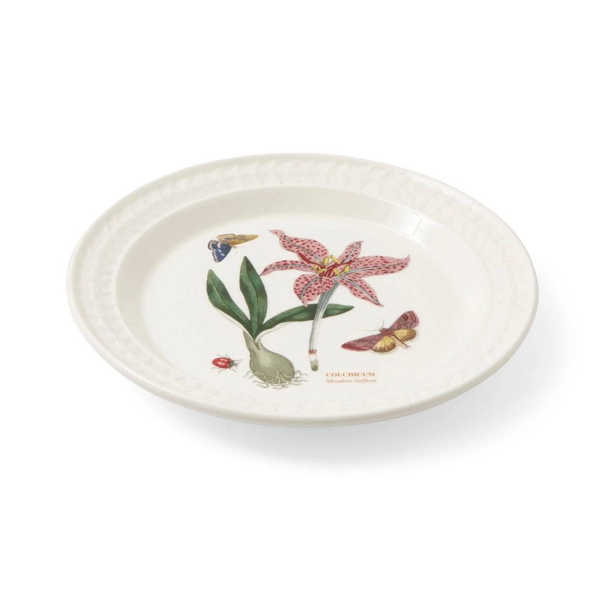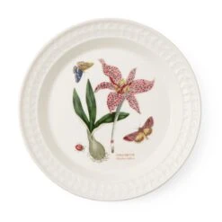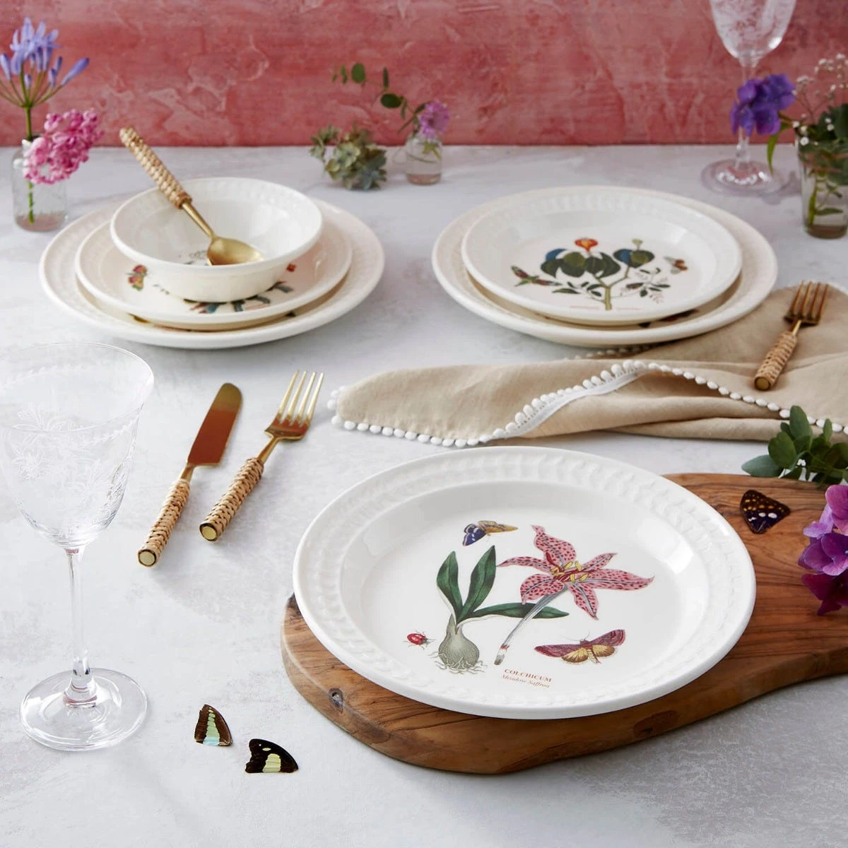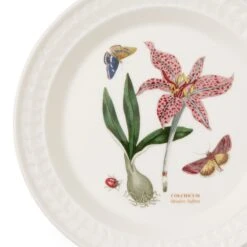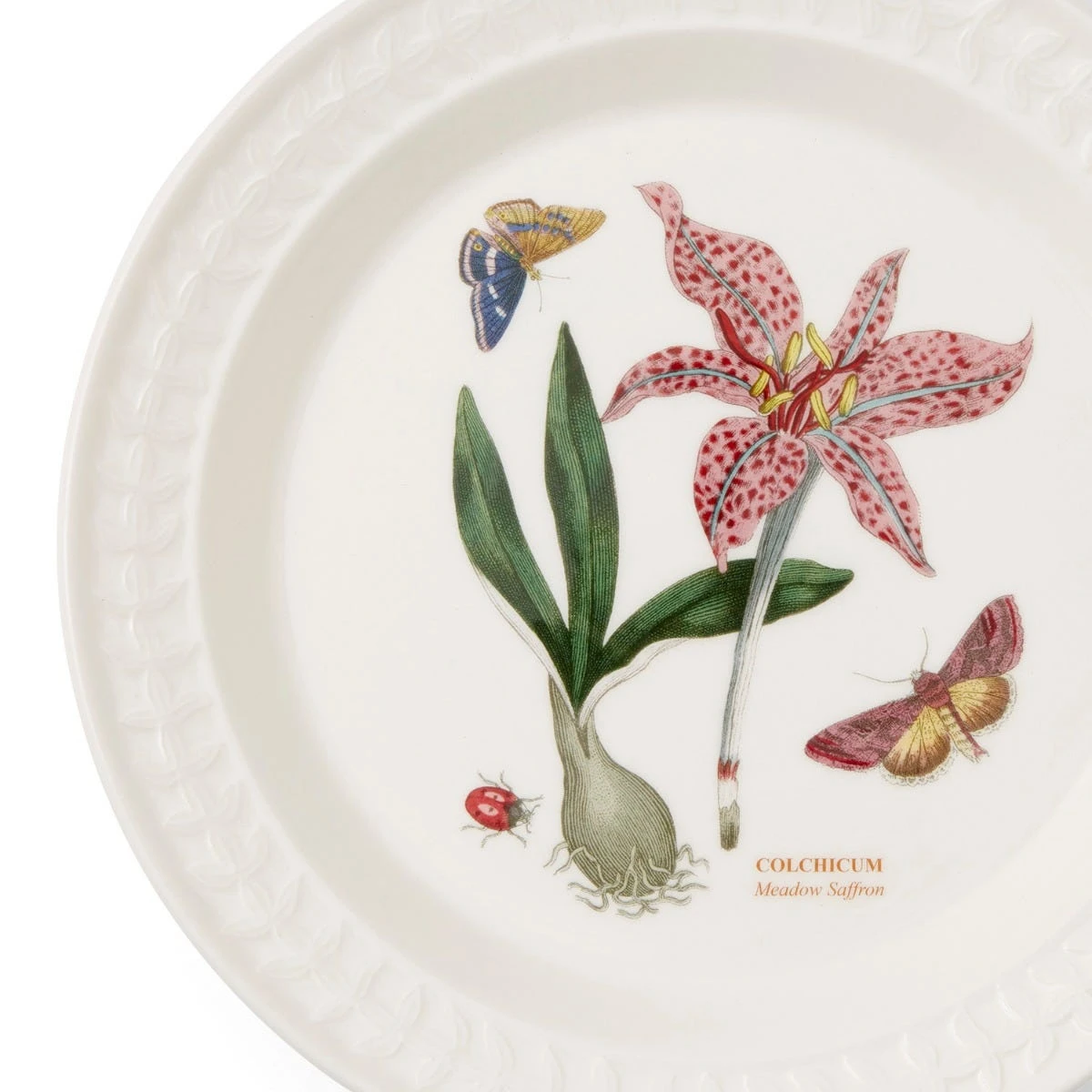 Fall in love with the sweet design of the Botanic Garden Papilio Amethyst Dinner Plate. The white plate features a beautiful pink meadow saffron flower surrounded by fluttering butterflies and a cherry red ladybird. Inspired by the Botanic Garden Harmony collection, the plate features the laurel leaf border embossed around the edge, making it the perfect plate to layer with your existing Botanic Garden collections for a mix and match tablescape.