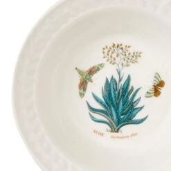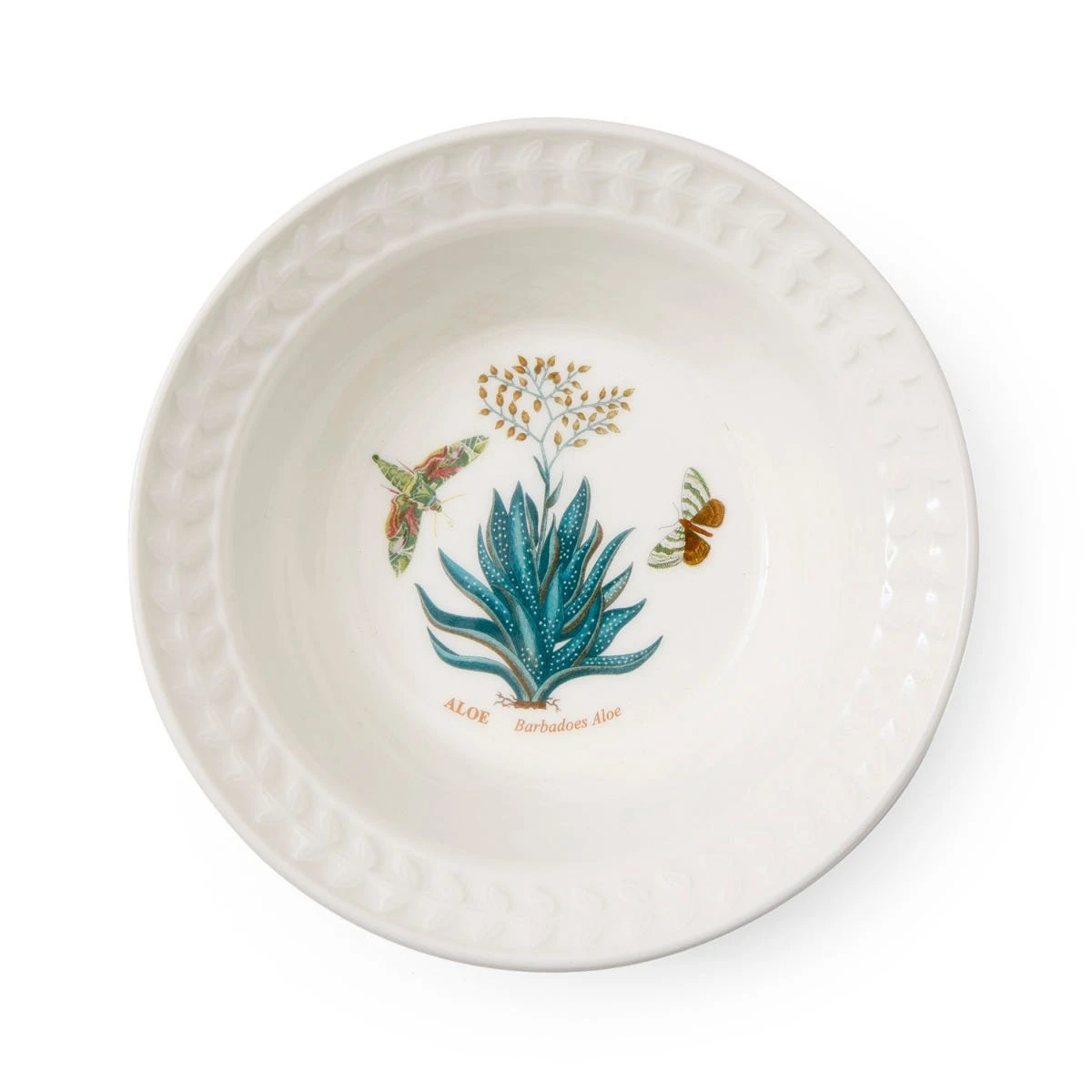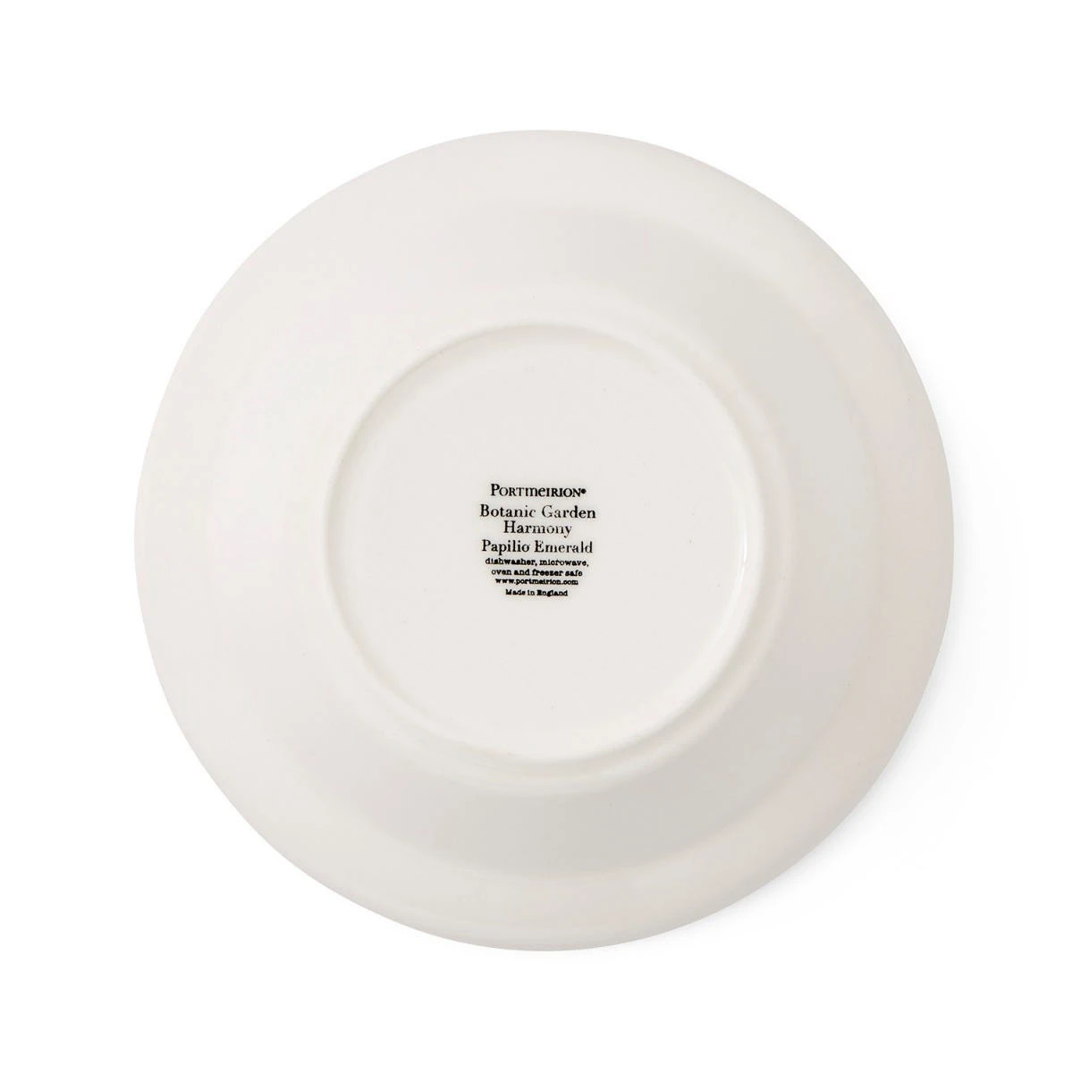Make a statement with this striking Papilio Emerald cereal bowl from the Botanic Garden collection. This white bowl features a stunning design of colourful butterflies and the Barbadoes aloe plant in vibrant green in the centre, while the iconic Botanic Garden laurel leaf wraps around the rim of the bowl in a delightful embossed style. Enjoy your favourite breakfast, then simply pop it in the dishwasher for easy cleaning ready for the next day. Made in England,.