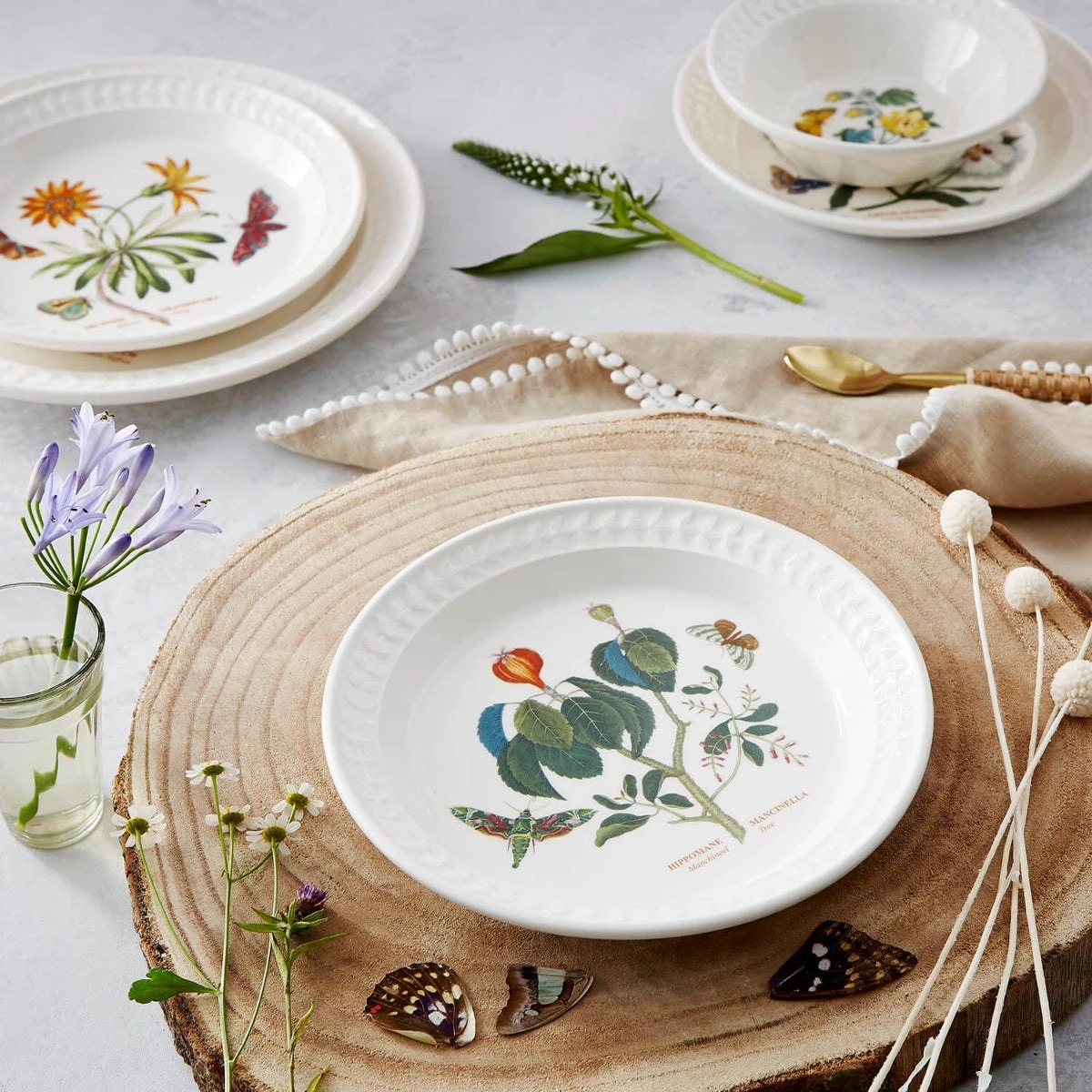 Bring a pop of colour to your table with the floral magic of Botanic Garden. This Emerald side plate from the Papilio collection features the manchineel tree motif in vibrant shades of orange and green, while the iconic laurel leaf border wraps around the edge of the plate in a beautiful embossed texture. Use during dinner to serve warm crusty bread or a delicious mid-afternoon treat. Pair with matching dinner plates from the Papilio collection or mix with your existing Botanic Garden range.