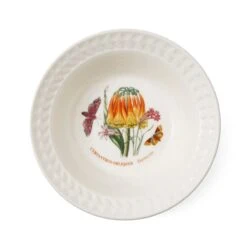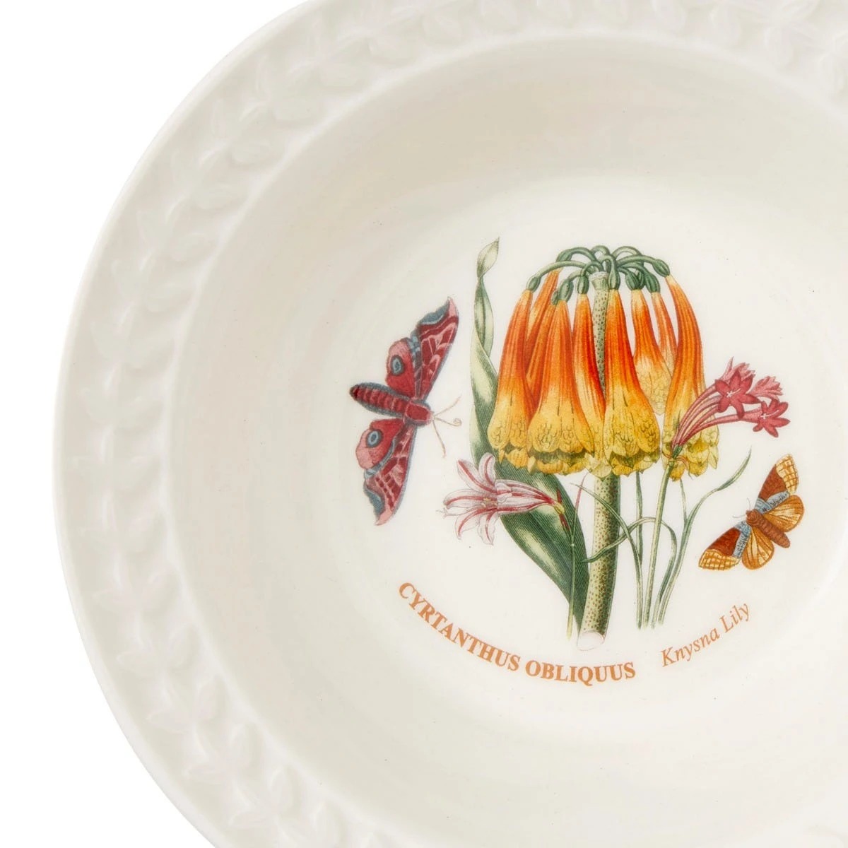 Start your day in style with this Botanic Garden Papilio Opal cereal bowl. Featuring the stunning Knysna lily design in gorgeous shades of orange and yellow surrounded by vibrant butterflies, this bowl is a delight to use. The iconic laurel leaf border is embossed around the edge for a subtle, yet striking finish. Perfect for filling up with cereal each morning, or as a dessert bowl after your evening meal. Dishwasher safe, this bowl is perfect for everyday use.