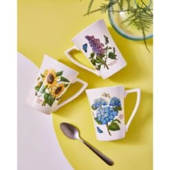 With a unique fluted shape and angled handle, these Mandarin style mugs from the Botanic Garden Collection offer something a little different. Each mug in the six piece set features a different floral motif, which is the iconic signature of the collection, giving a beautifully synchronised mix-and-match appearance. From the first morning cuppa to daytime downtime with a good book, these mugs are perfect for daily use. Microwave and dishwasher safe, they fit perfectly into busy modern life.