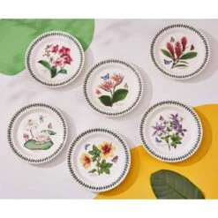 Add an exotic feast of colours to your dinner table with this set of six Exotic Botanic Garden dinner plates. The iconic Botanic Garden range has been gracing homes since it was launched in 1972, a true English classic loved by generations. Today its delightful mixture of beautiful motifs has been joined by exotic flora and fauna from tropical climates. These 10in/25cm dinner plates feature bursts of magnificent exotic petals interspersed with delicately detailed butterflies.