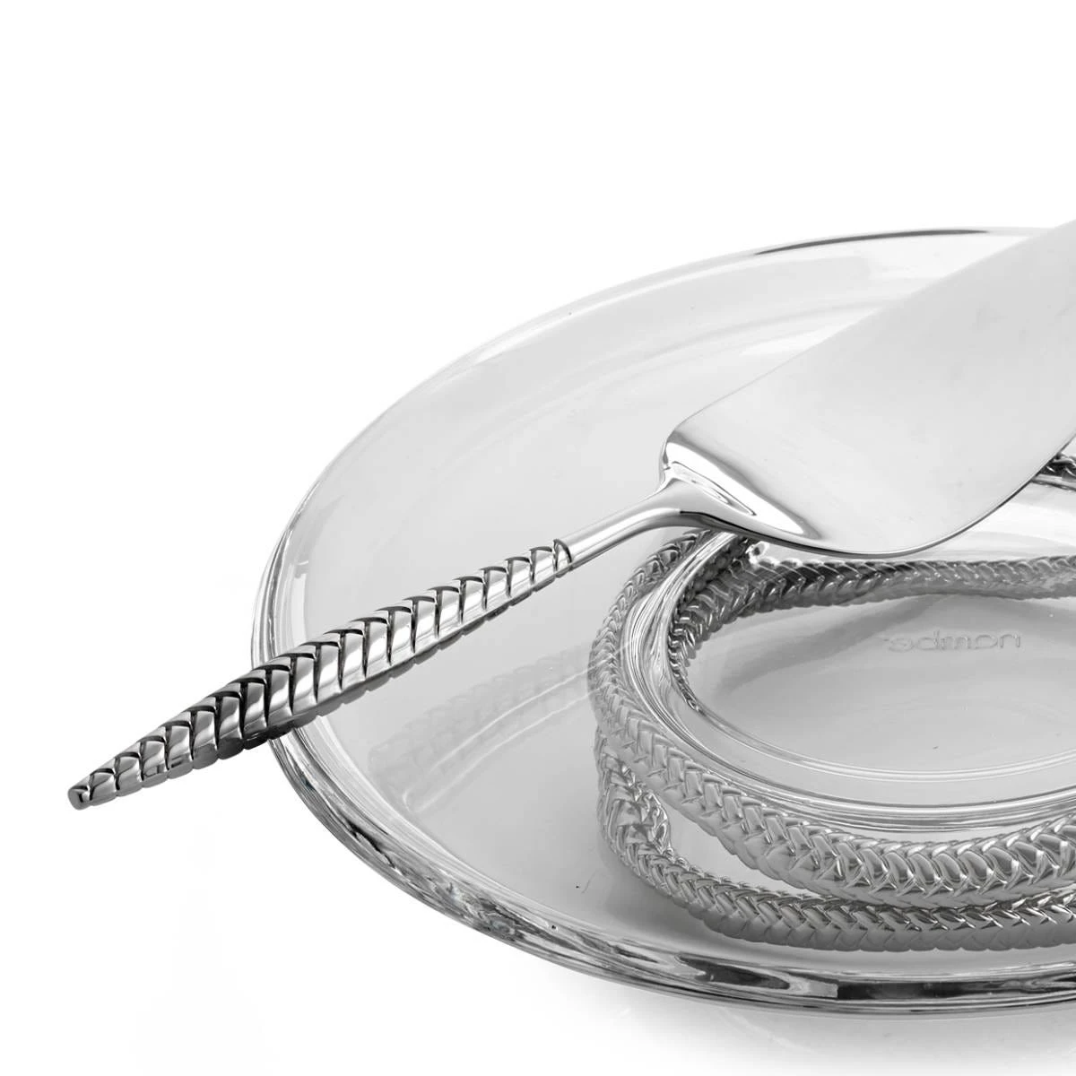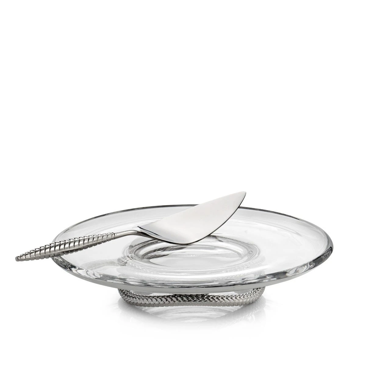 Serve desserts in style with this beautiful glass cake plate featuring metal rope detailing and a cake slice. A wonderful way to bring an edgy contemporary touch to traditional cakes and afternoon tea, this cake stand makes a wonderful centrepiece.