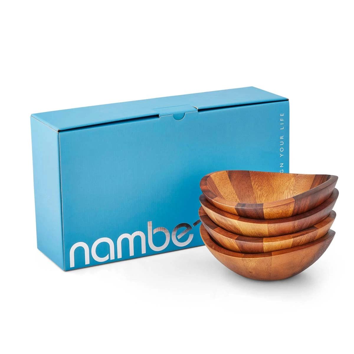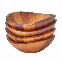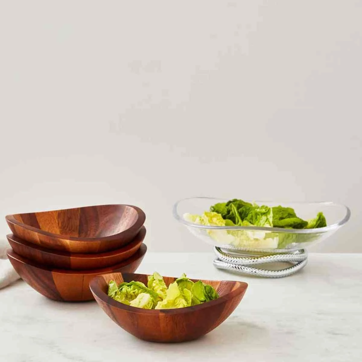 The Braid Salad Bowl Set brings a contemporary flair to every table. A set of four, each individual bowl mirrors the Braid larger salad serving bowl counterpart in shape. The dramatic wood grain texture is further accentuated by the upward curve of the bowl’s edges. Expertly designed and crafted with luxury acacia wood, this designer bowl set brings a timeless ambience to every meal.