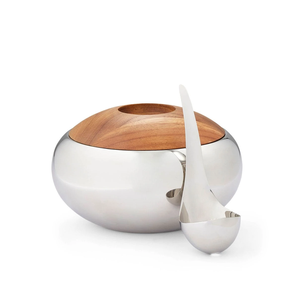 A functional sculpture, the Scoop Ice Bucket’s pleasing curves wrap and cradle the ice, keeping everything inside nice and cool late into the night. When not in use the scoop rests on its wooden lid, creating an added sense of intrigue.