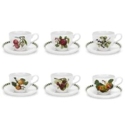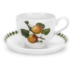 A beautiful way to start your day, this set of six breakfast cups and saucers brings colour and character to your morning. From the Pomona collection, which is named after the ancient goddess of fruit, each piece features a motif inspired by a bountiful orchard. With illustrations taken from hand-coloured books of the 1830s, each cup is full of charm and accompanied by a pretty leaf edged saucer. Microwave and dishwasher safe, these pretty cups and saucers are made for the modern busy kitchen.