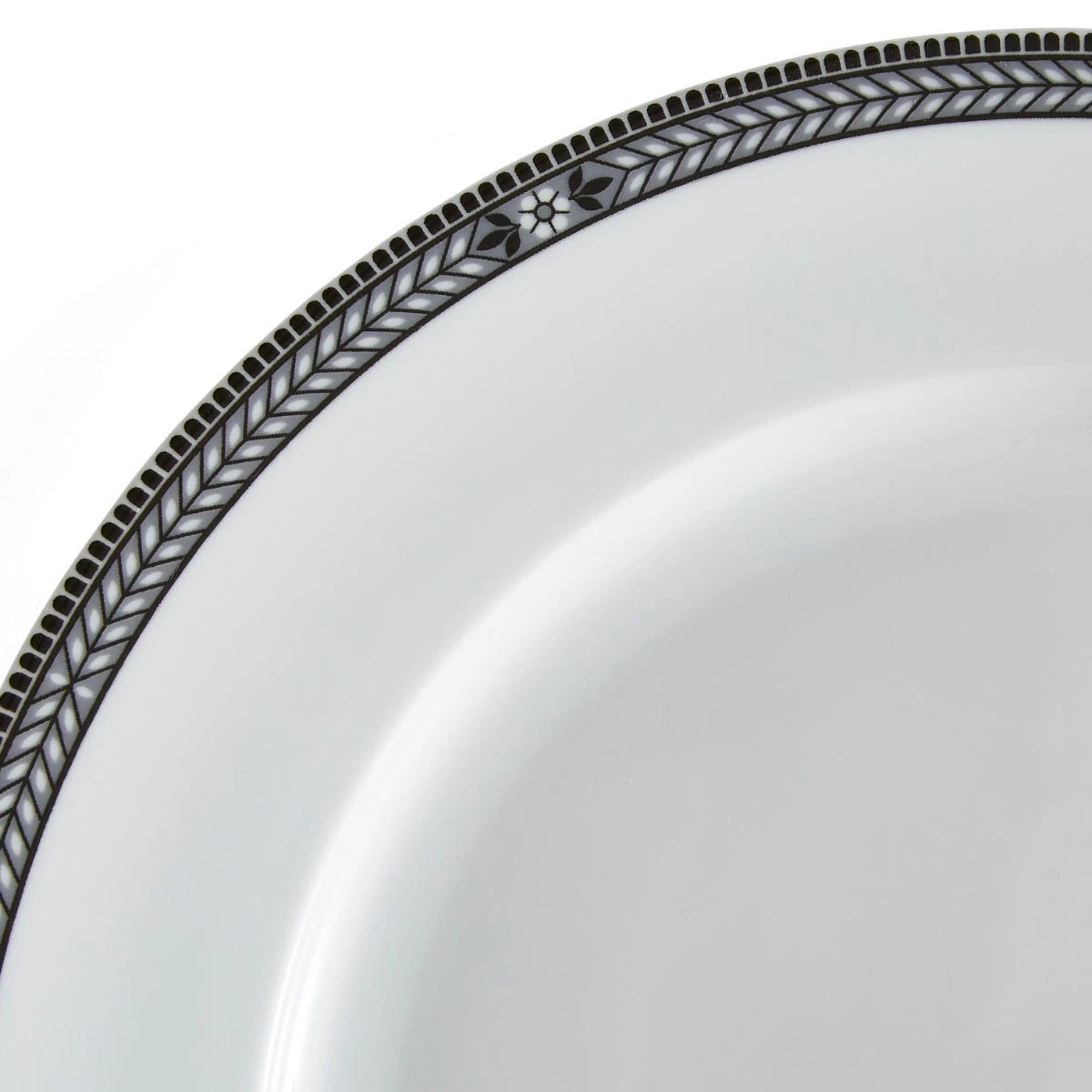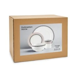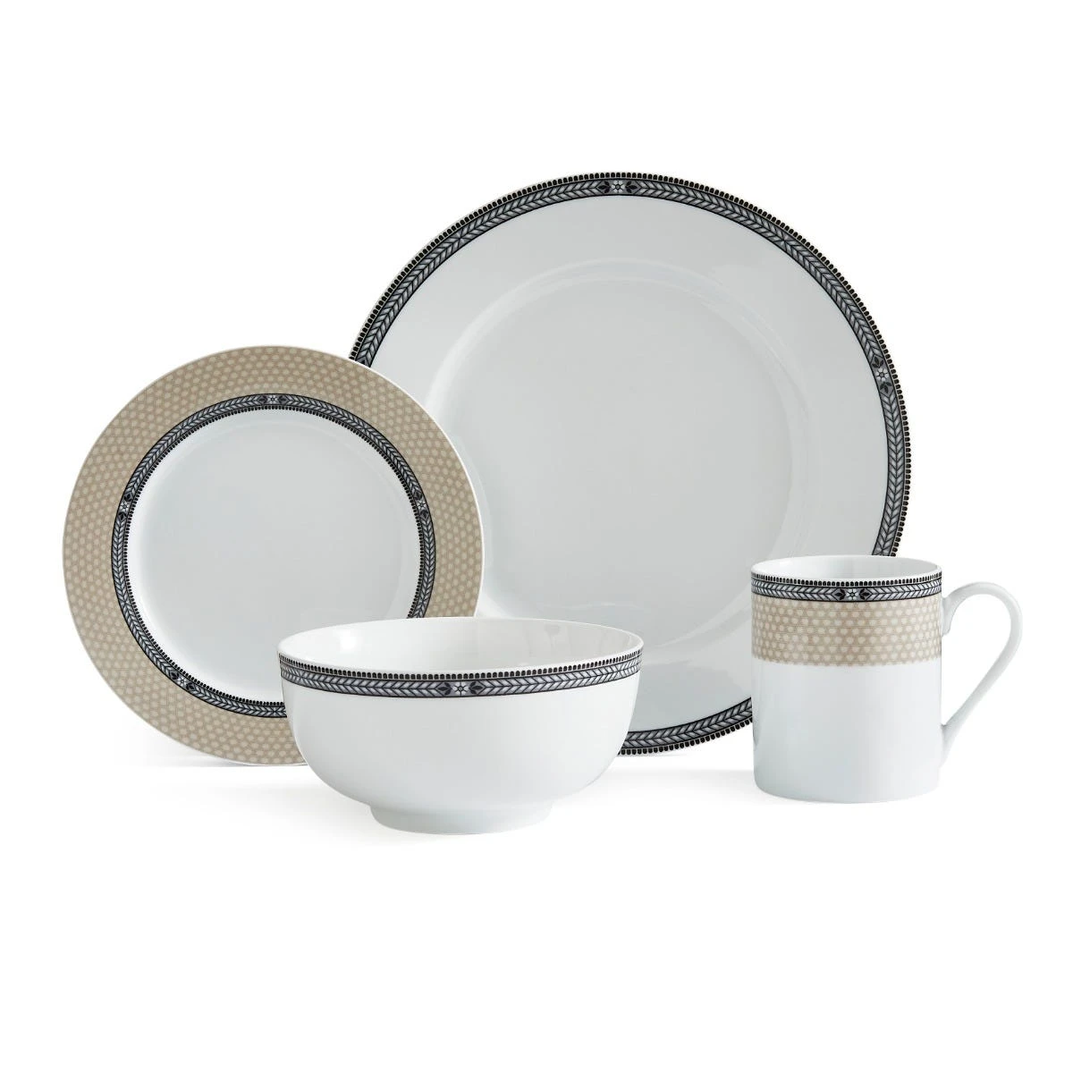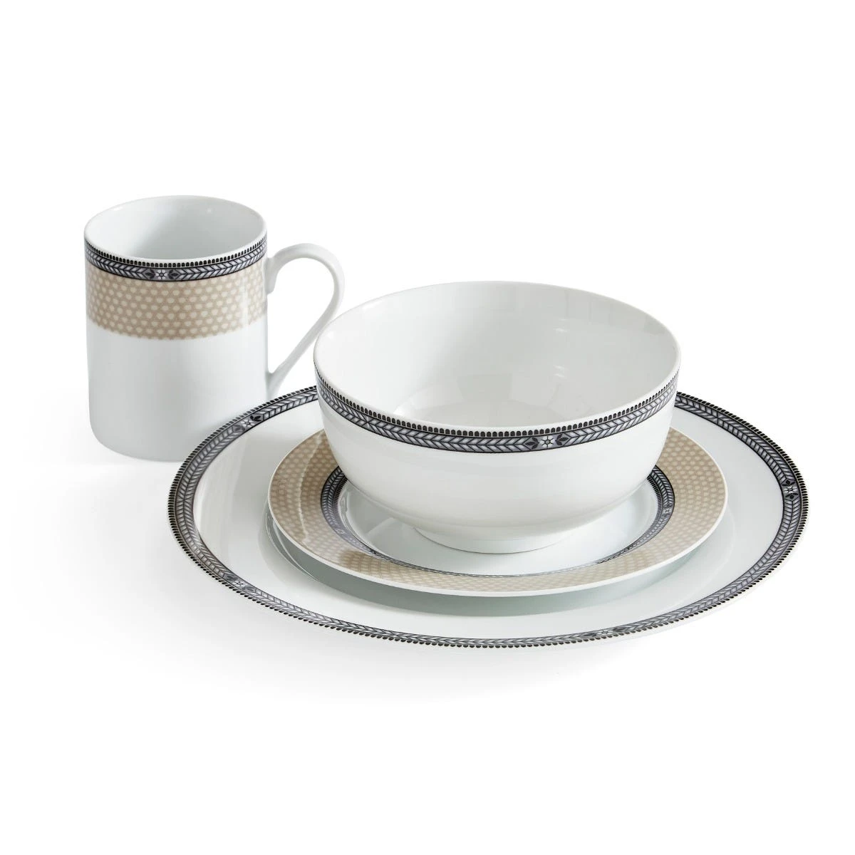 Set a stylish table for breakfast, lunch and dinner with this 16-piece porcelain dinner set from Portmeirion Home. Featuring four of each dinner plate, side plate, cereal bowl, and mug, an art-deco style border adorns each piece, while a subtle additional light-grey border adorns the side plate and mug too. Suitable for dishwasher and microwave use, this set can be used every day and is a wonderful addition to busy homes.