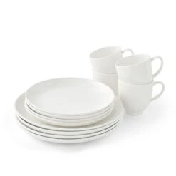 A perfect set to refresh your tableware, this Soho 16 piece dinner set by Portmeirion is beautifully simple, robust – and looks wonderful. In a rimless ‘coupe’ style, this white dinner set includes four each of dinner plates, side plates, bowls and mugs – everything you need for dining with four people. Made from earthenware with an elegant minimalist aesthetic, this set is made for everyday use in a busy family home. It’s dishwasher for easy cleaning, and each piece can go in the microwave too.
