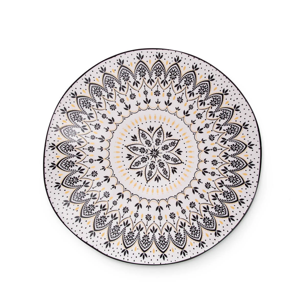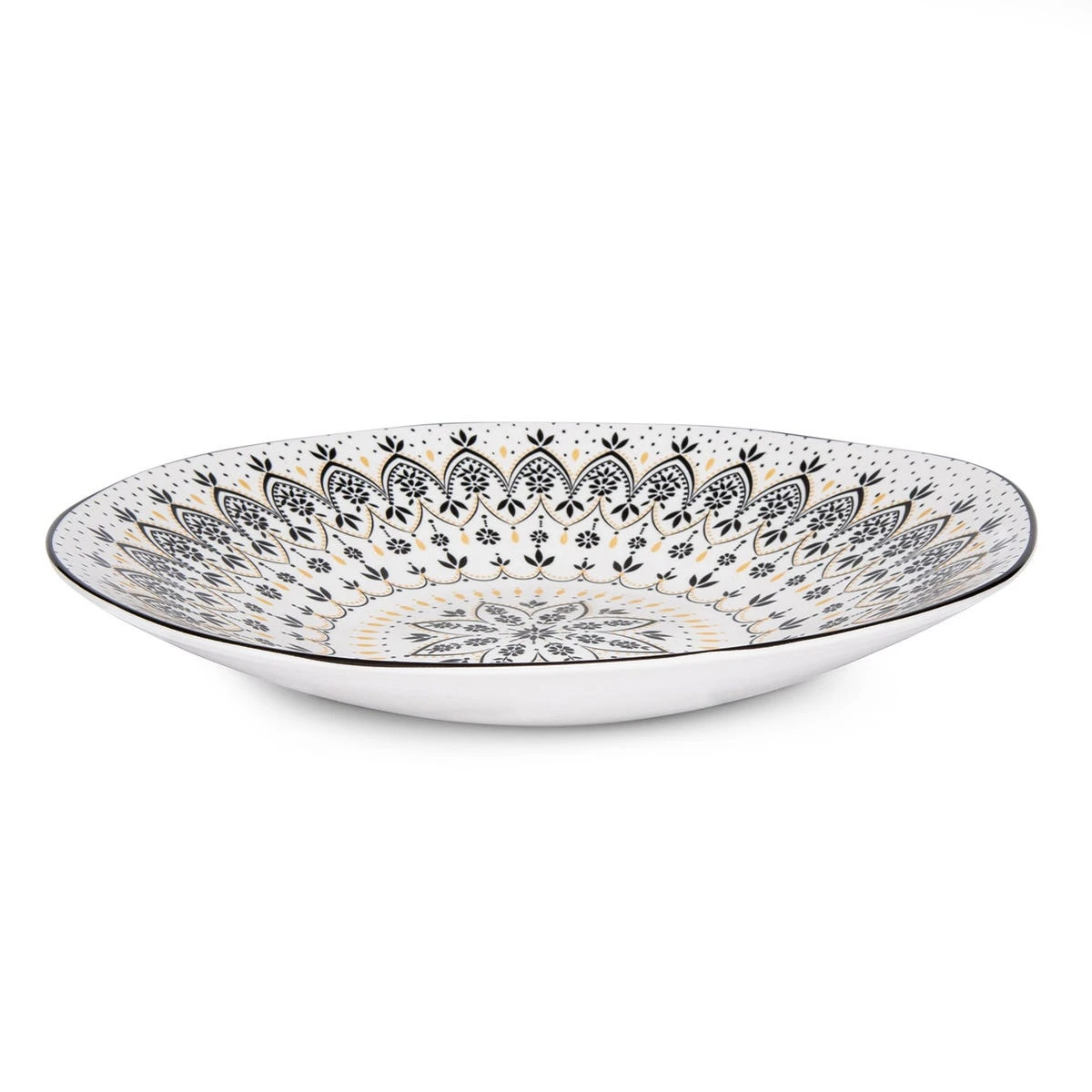 Tuck into tasty dishes with friends and family in style with the Artisanne Noir large serving bowl. Featuring a mesmerising design from Sara Miller London in eye-catching monochrome, subtle gold detailing finishes off the piece for a touch of sophistication. Serve a platter full of colourful salad, moreish bread, or indulgent pasta with this dish, then simply place into the dishwasher after use for easy cleaning. A beautiful yet practical addition to your collection.