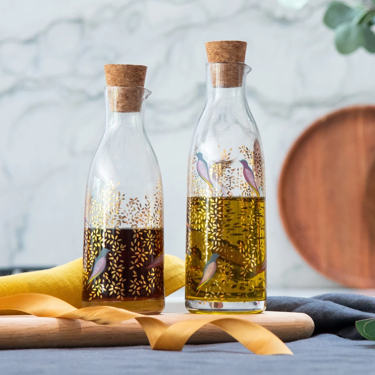 An elegant addition to your kitchen, this Sara Miller London Portmeirion Chelsea oil and vinegar set is a must-have accessory for ensuring you’re cooking and serving in style. The glass bottles are adorned with the Chelsea collection’s signature glistening 22-carat gold detailing and colourful birds, feature a small lip for the perfect pour, and cork stoppers to keep your oil and vinegar fresher for longer. Part of the Chelsea glass capsule collection, pair with the matching glass bowls for a stunning collection.
