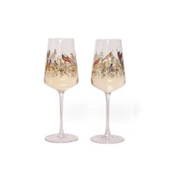 Serve up your wine of choice for you and a friend in style with this beautiful set of two wine glasses from the Sara Miller London Portmeirion Chelsea collection. Featuring colourful birds perched gracefully upon stunning trailing 22-carat gold leaves, these elegant glasses are a delight. Pair with other accessories in the Chelsea glass capsule collection, such as the matching carafe or set of two tumblers, for a gorgeous set. These wine glasses also make a special gift for a loved one, perfect for toasting a celebration.