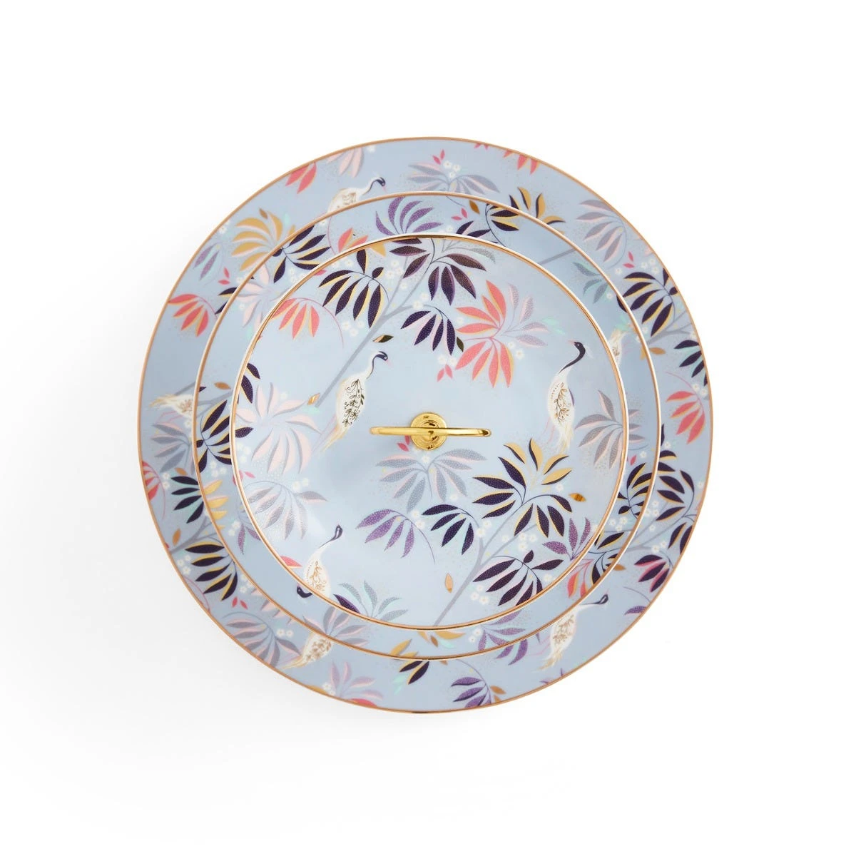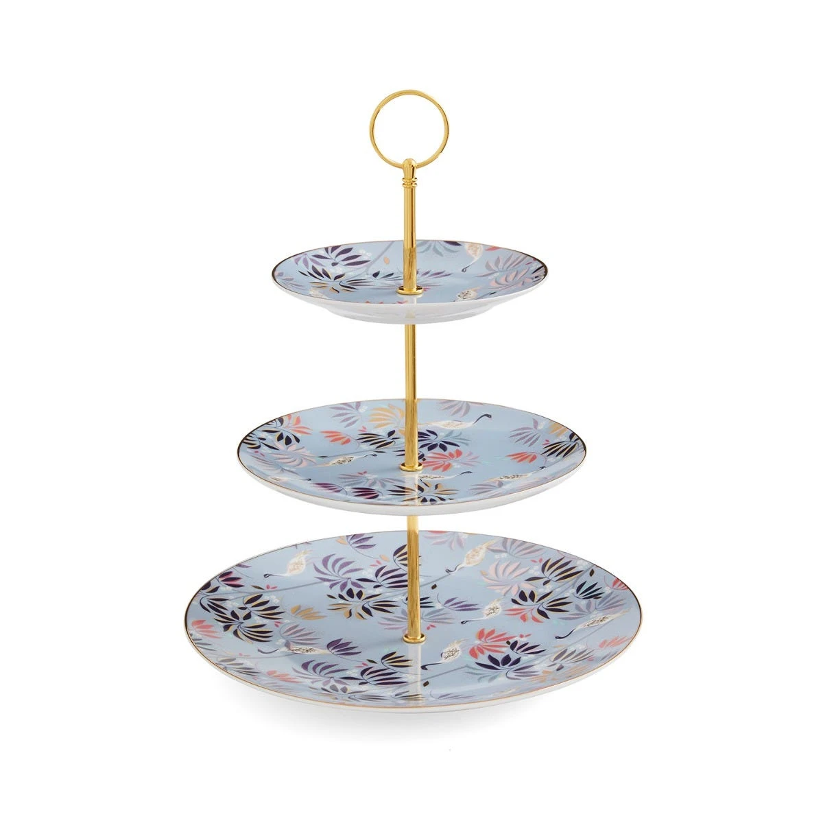 Experience the delights of India with this show stopping 3-Tier Cake Stand from the Sara Miller London Portmeirion India Collection. Inspired by the beautiful courtyards, exotic wildlife and vibrant colours of Rajasthan, this striking sky blue cake stand is intricately decorated with eye-catching cranes and Indian foliage, and edged with luxurious 22 carat gold. Mix and match with other items from the stunning range for a majestic Indian afternoon tea celebration.