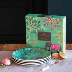 Add some colour to your afternoon tea celebration with this set of Sara Miller London Portmeirion India Cake Plates. The set features four vibrant designs inspired by the ornate architectural details, meticulously hand-painted palaces, beautiful courtyards, exotic wildlife and treasure trove of colour from Sara’s travels to Rajasthan. Each distinctive design is picked out on a different colourway of sky blue, midnight, indigo and light jade to create a visually rich capsule collection.