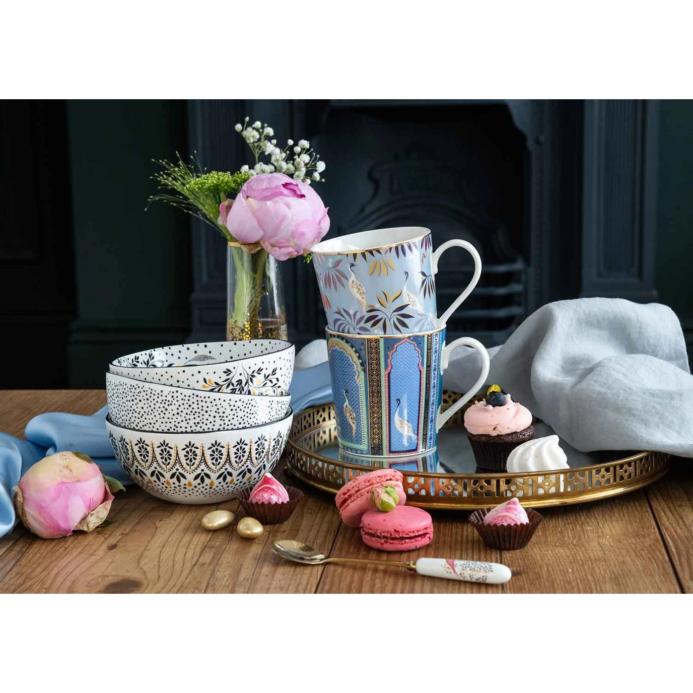 Enjoy an Indian themed afternoon tea with this stylish sky blue mug from the Sara Miller London Portmeirion India Collection. Decorated with indigenous cranes and exotic Indian foliage, this elegant mug is finished with 22 carat gold accents for a truly opulent feel. Mix with other mugs from the visually stunning collection, and match with the exquisite 3-Tier Cake Stand for an Indian inspired afternoon tea celebration.