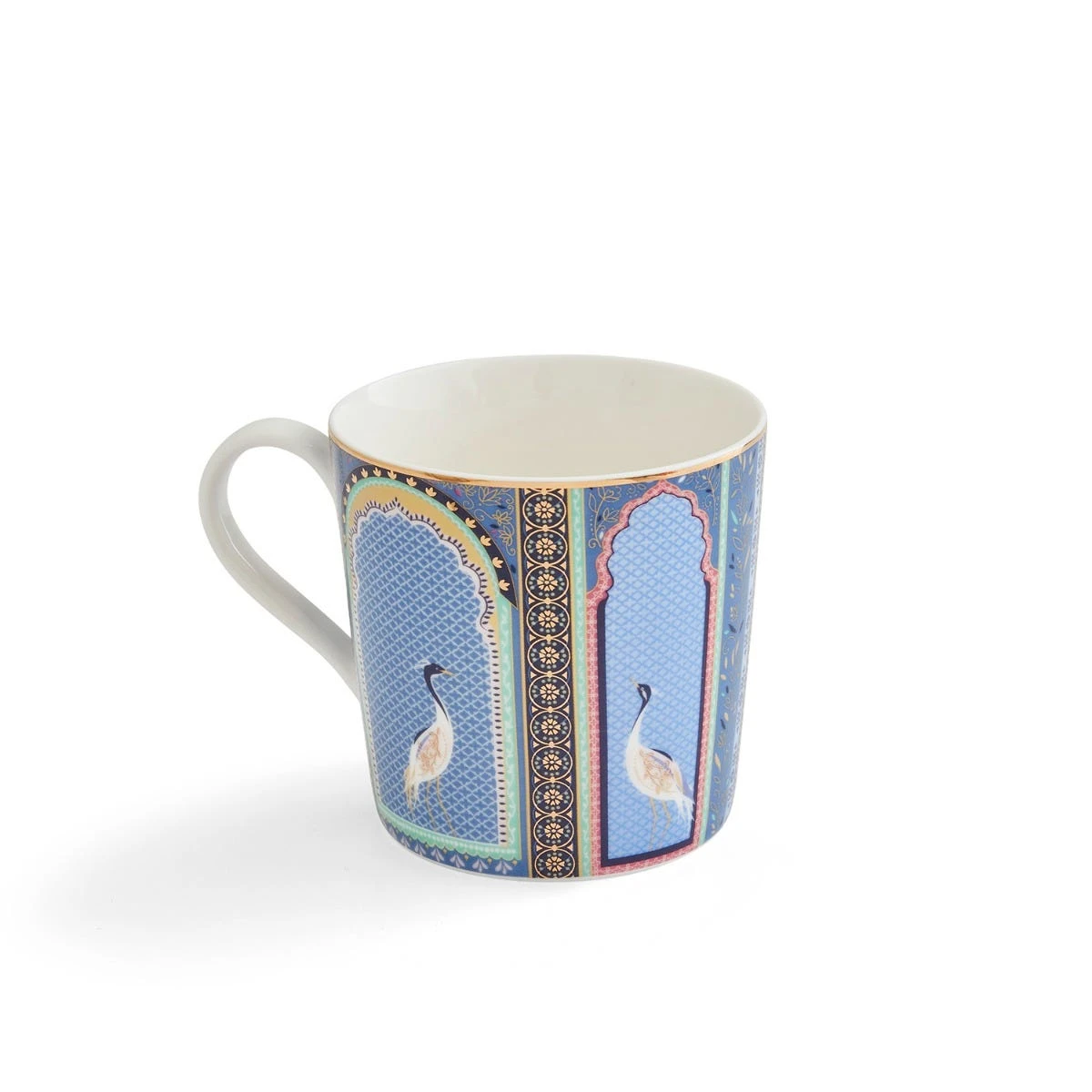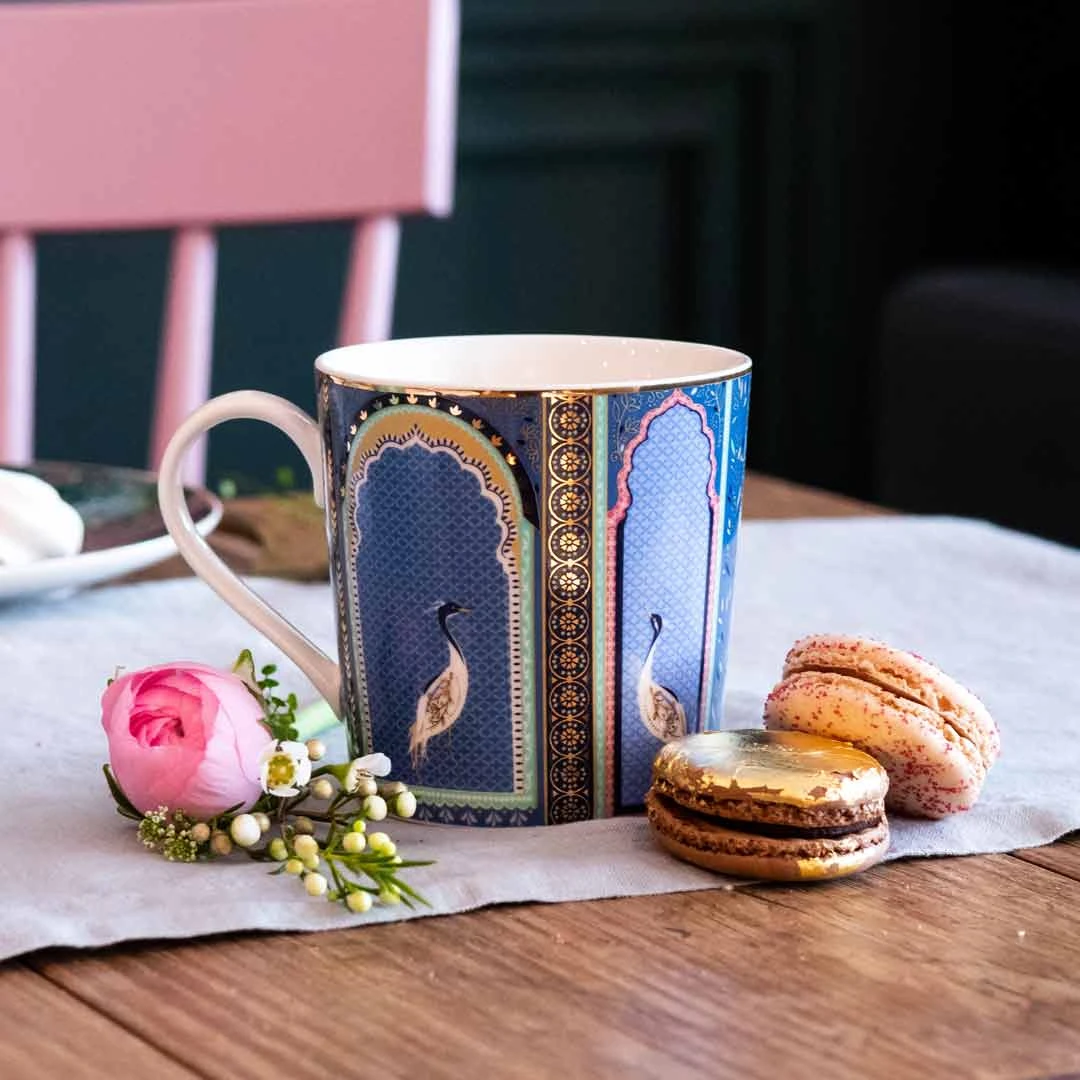 Indulge in spot of armchair travel with this wonderfully evocative mug from the Sara Miller London Portmeirion India Collection. Exquisitely decorated with brightly coloured cranes and traditionally patterned lattice windows, this fine china mug is finished with 22 carat gold for a luxurious feel. Pair with other pieces from the range and take mixing and matching to the next level.