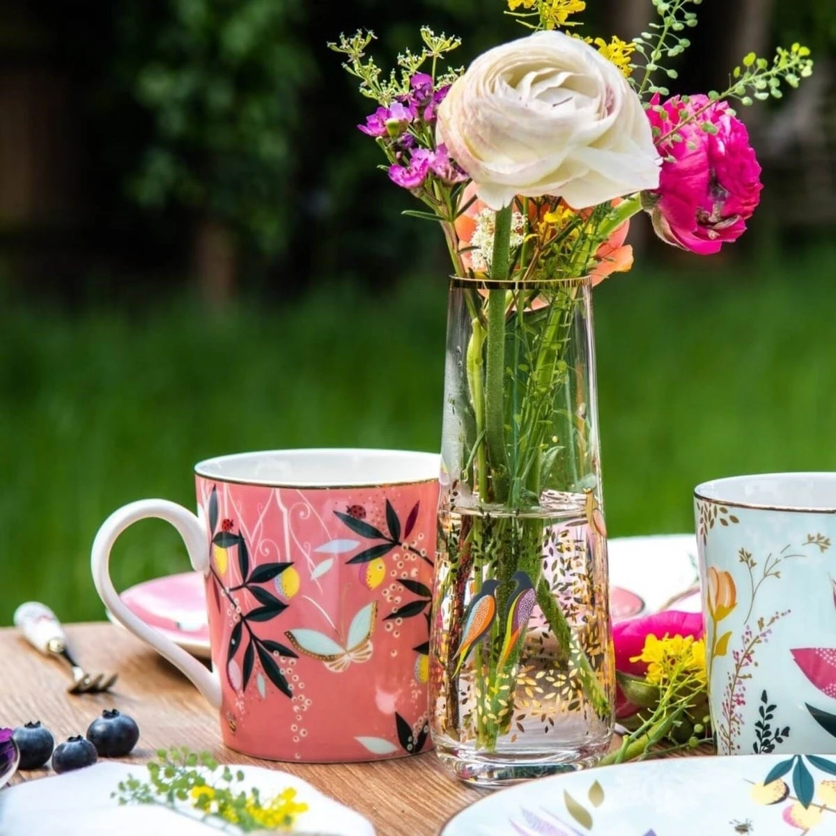 Brighten your day with this stunning coral Sara Miller London Portmeirion Orchard Mug. Stylishly decorated with delicate butterflies in an exquisite orchard setting, itβs made from fine china with sublime 22 carat gold detailing. It is a little slice of luxury, for drinks that deserve to be savoured. Add to your collection with matching pieces or mix it up with mugs in the three different colourways. Packaged in the most beautiful box, this pretty mug would make the most perfect gift.