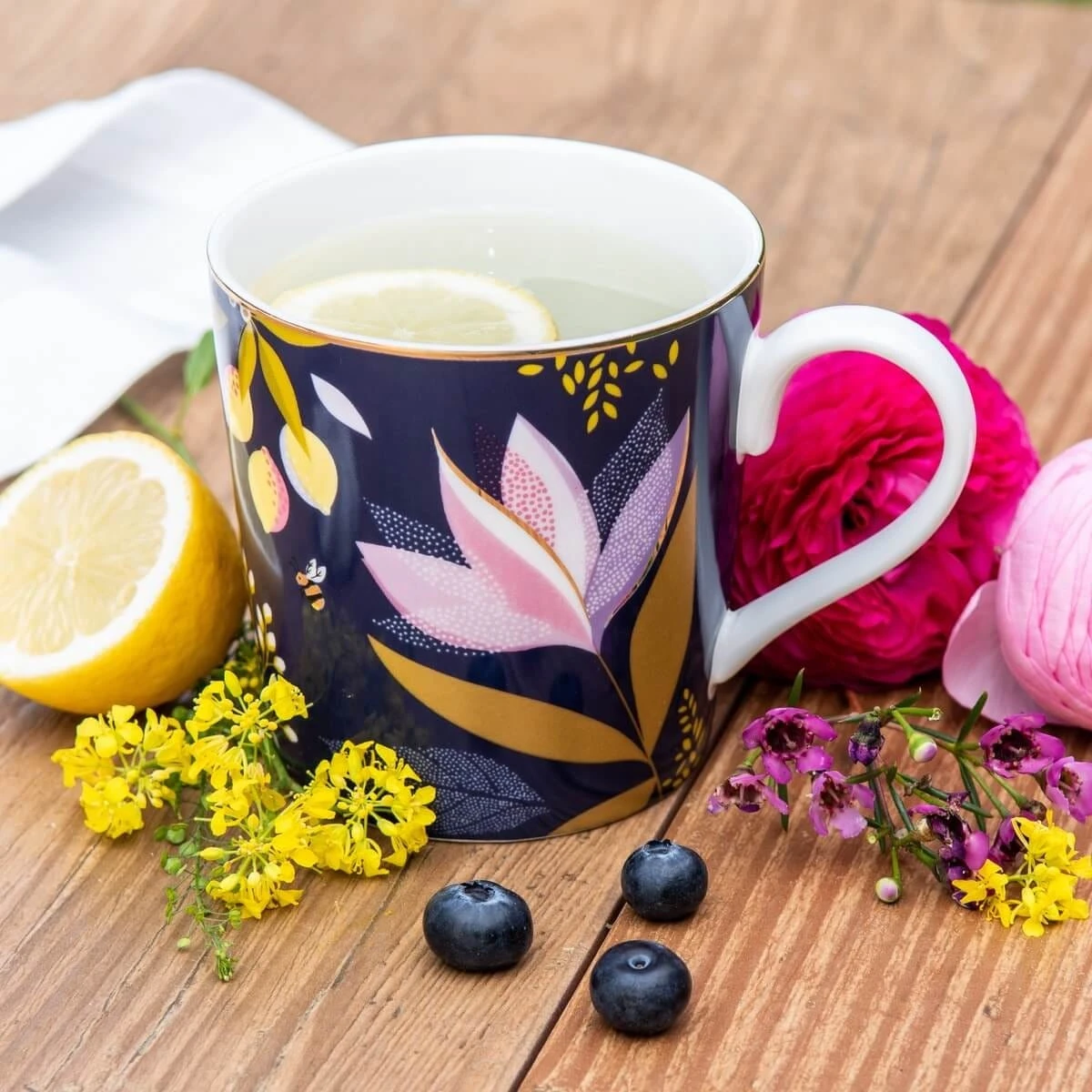 Whether you’re a coffee lover or a tea drinker, our individually boxed Sara Miller London Portmeirion Orchard Mug is sure to elevate your elevenses. Elegantly decorated with vibrant Sara Miller florals and luscious Italian lemons on a classic dark navy background, its delectable design has been inspired by the beauty of nature. Step away from work and enjoy an indulgent moment with this gorgeous mug, which has been beautifully crafted from fine china and 22 carat gold.