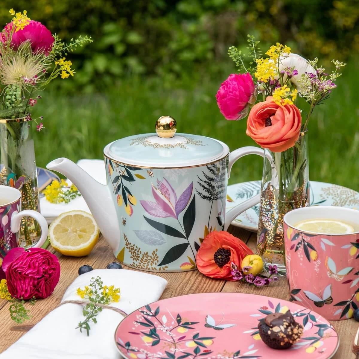 Start your own tea tradition with the prettiest teapot you’ve ever seen. The delicate Sara Miller London Portmeirion Duck Egg Orchard Teapot features stunning, contemporary florals and sun-ripened lemons against a soft blue background. It’s just the right size for four cups of tea, or indulge yourself with hot tea on tap from a teapot topped with 22 carat gold. Beautifully packaged in a Sara Miller gift box, this fine china teapot would make an elegant gift for any tea lover.