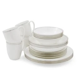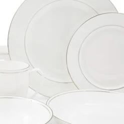 Create an elegant setting with this 20-piece tableware set from the Serendipity Duo collection. Including four of each dinner plate, side plate, cereal bowl, pasta bowl, and mug, each piece in the set features a stunning double-platinum band. Made from fine bone china, this 20-piece tableware set has exceptional strength and durability, but has a light and delicate feel. Its crisp white colour and subtle platinum detailing offer a beautiful simplicity perfect for all dining occasions.