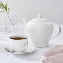 A beautiful centerpiece for breakfast or afternoon tea, this teapot from the Serendipity Platinum Collection by Royal Worcester is elegance defined. In pure white fine bone china, it features a sleek touch of glistening platinum for a refined touch. Create a wonderful afternoon tea by combining this beautiful china teapot with cups and saucers also from the Serendipity Platinum range, for a setting sure to impress.