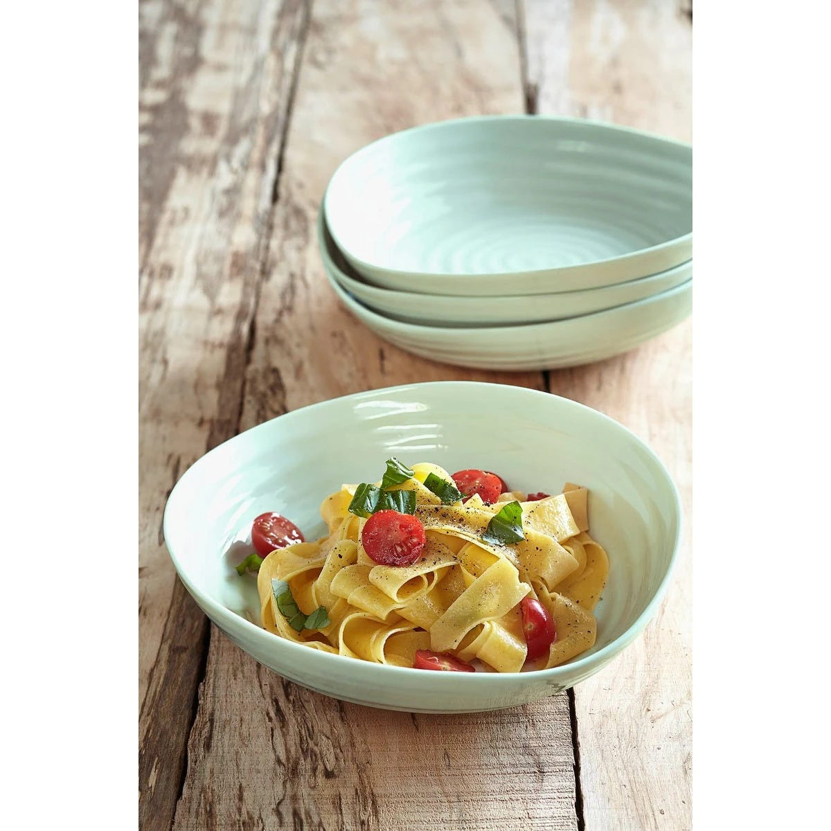 Whether you love penne, spaghetti, or ravioli serve your favourite pasta dish in style with these Celadon pasta bowls from Sophie Conran. Featuring Sophie’s signature ripple design, this porcelain bowl is showcased in a beautiful green-blue colour to add a vibrant pop to your dinner table. Style alone or mix and match with your Sophie Conran White pasta bowls for a colourful setting. Designed for the modern home, this bowl is microwave and dishwasher safe.