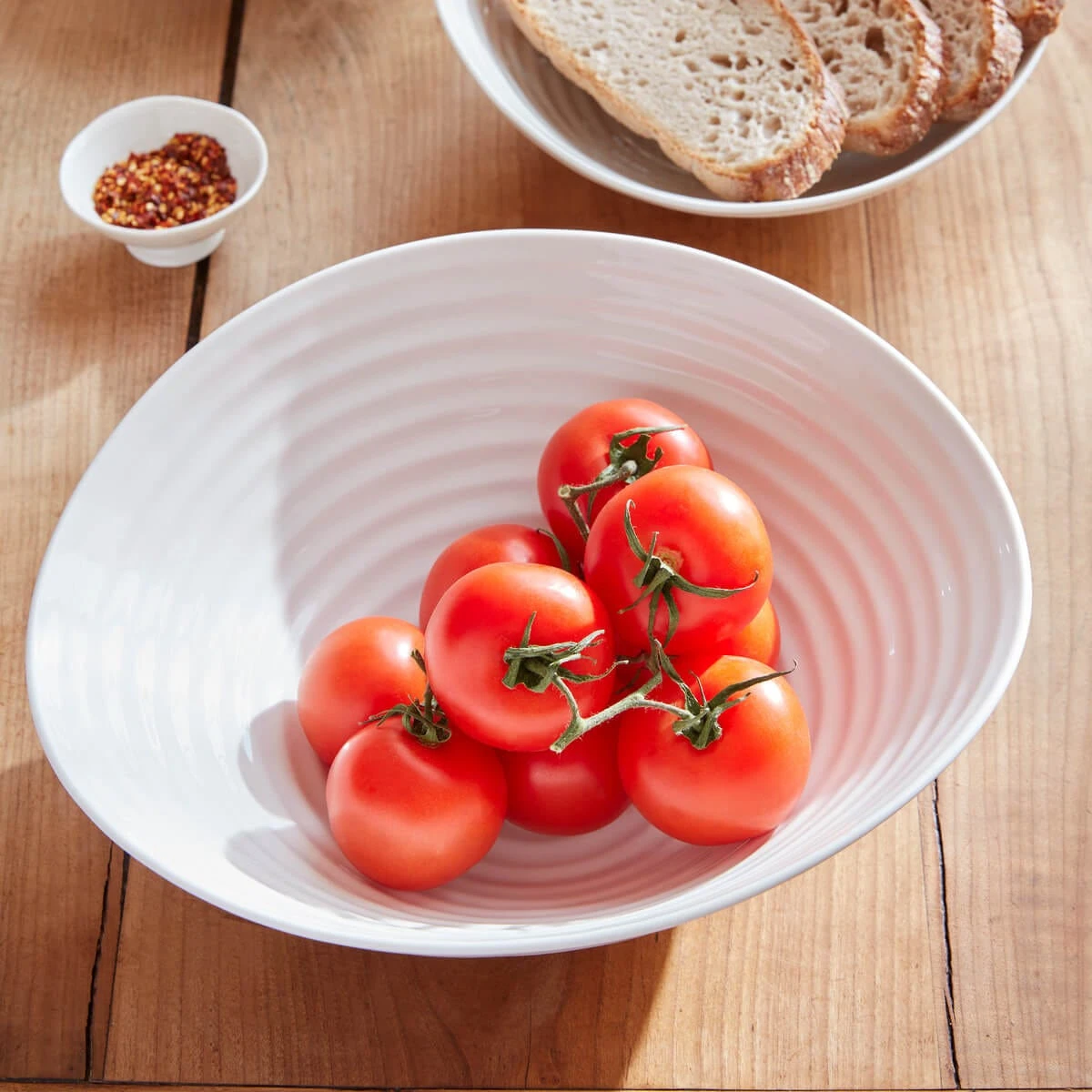 The Sophie Conran white large salad bowl is a generously sized salad bowl that makes an elegant centrepiece at large family gatherings and formal dinner parties. It’s constructed with the finest quality porcelain in a gleaming white finish, and the rippled surface adds a delightful texture to the design. Pair it with matching serving platters and dinner plates from the Sophie Conran for Portmeirion collection for a fresh take on a contemporary table setting.