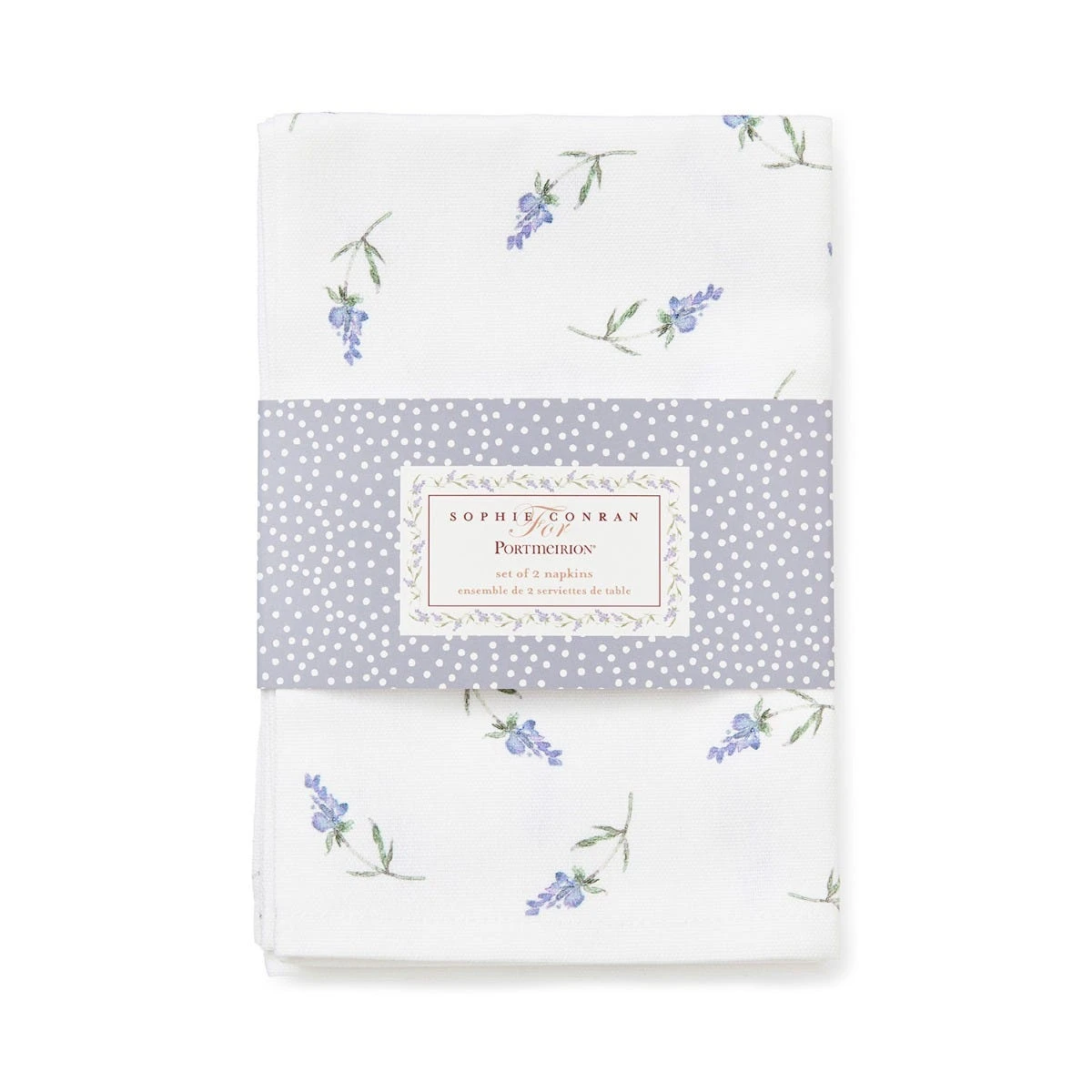 Add a sophisticated touch to your mealtimes with this set of 2 napkins from Sophie Conran. Adorned with the beautiful Lavandula design of ditsy lavender sprigs, these white napkins will bring a delightful pop of colour to your table. Made from 100% cotton, the napkins are machine washable making them suitable for everyday dining, as well as special occasions. Pair with the matching table runner and porcelain tableware for a stunning setting perfect for spring and summer entertaining.