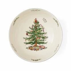 Serve spoonfuls of Christmas cheer with this colourful serving bowl featuring the much-loved Christmas Tree pattern. The greens and reds make this beautiful design a traditional favourite. The large, deep bowl has plenty of space for a hearty portion of potatoes, Brussels or wholesome greens. While it looks delicate, this porcelain serving dish is tough enough to be heated and reheated in the oven or microwave, and you can simply pop it in the dishwasher when it’s time to watch a Christmas film.