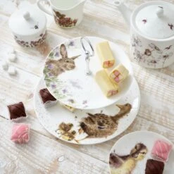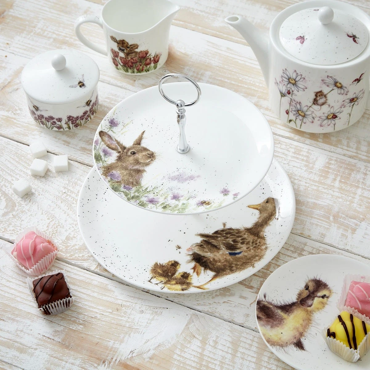 Cake lovers take note – this delectable two-tier porcelain cake stand is a wonderful addition to your Royal Worcester Wrendale Designs collection. Artfully decorated with watercolour designs from British artist Hannah Dale, famous across the globe for her characterful animal illustrations, this adorable cake stand features a mother duck with her two fluffy ducklings, and an inquisitive bunny amidst a field of purple clover. Sure to take centre stage, it will look glorious at afternoon tea.