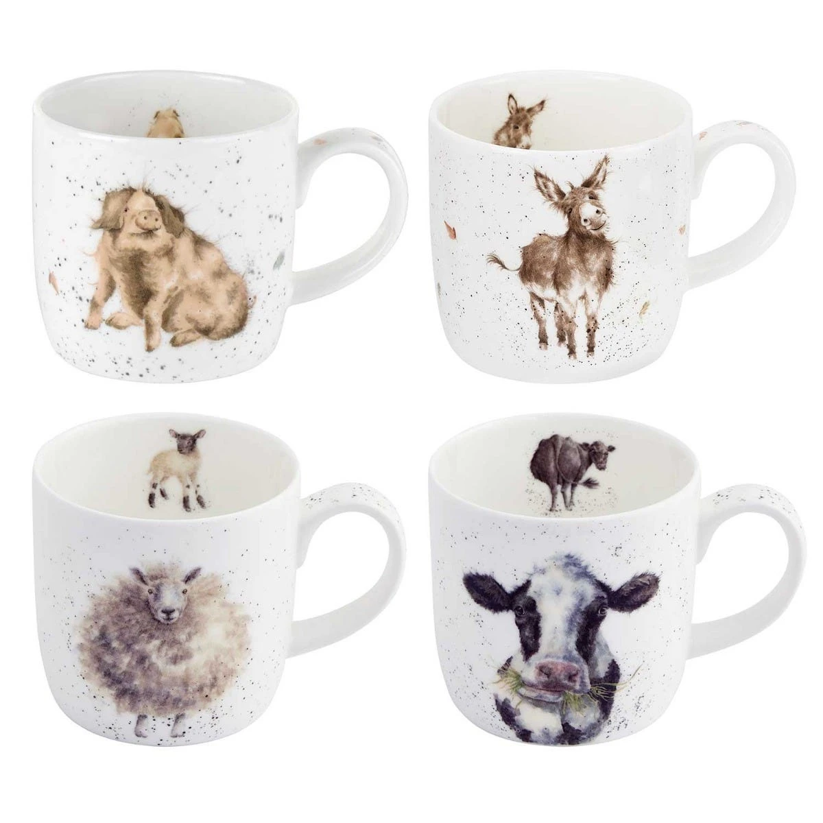 The perfect family mug set. A set of four, each fine bone china mug in this adorable set features a watercolour illustration from artist Hannah Dale. Featuring farm-yard favourites of a cow, pig, sheep and donkey, this mix-and-match mug collection from Wrendale Designs will make you and your family smile every time you use them. Microwave safe, use to warm up cooled drinks and simply pop in the dishwasher after use for fuss-free cleaning.